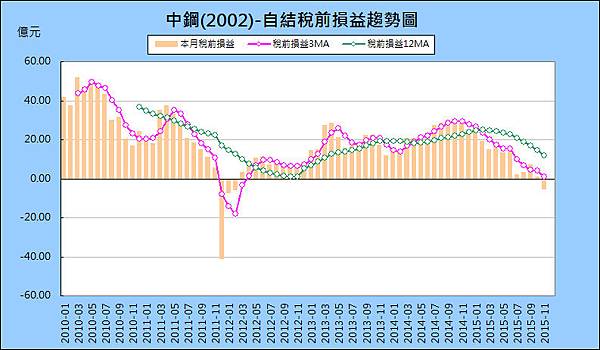 中鋼11月單月合併稅前虧損5.23億元,是2012年2月以來首見虧損,也是自2013年採合併報表以來,第一次出現赤字。並使今年前11月合併稅前盈餘減至114.88億元,每股稅前盈餘約0.73元。
